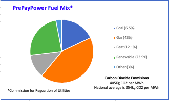 The fuel mix for the most recent year available for PrePayPower is shown below.